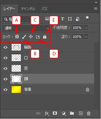 [レイヤーパネル]には5種類のロックアイコンがあります。