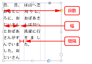 数値を上げればテキストフレームが分割され、段組を設定することができます。 - [幅]