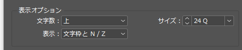 フレームグリッドの文字数情報(例:16W × 9L = 144)の表示位置を変更することができます。 - [サイズ]