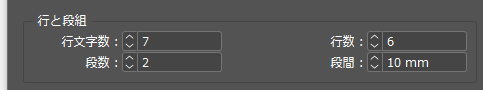 数値を上げればテキストフレームが分割され、段組を設定することができます。 - [段間]