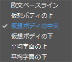サイズの小さな文字を最大サイズの文字のどこに揃えるかを以下から設定することができます。