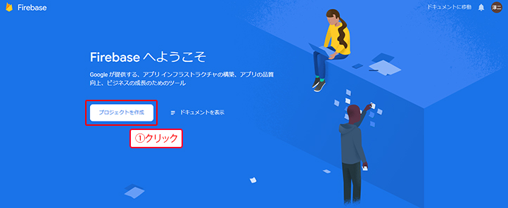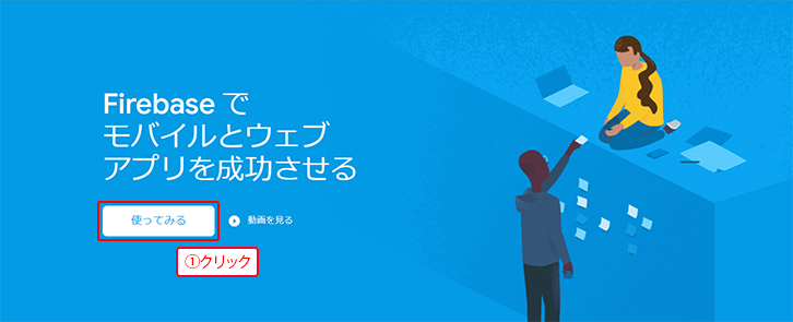 (1)Webブラウザで「https://firebase.google.com/」にアクセスします。