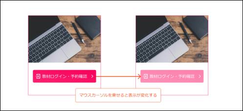 ボタンなどにマウスカーソルが重なると表示が変わる表現のことをホバーと言います。見ただけでわかる場合もありますが、