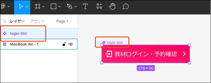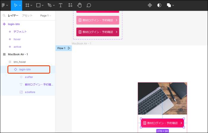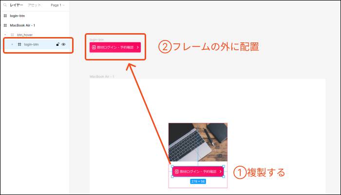 (6)フレーム[MacBook Air - 1]内のフレーム[btn_hover]内のフレーム[login-btn]を複製して、フレームの外に配置します。
