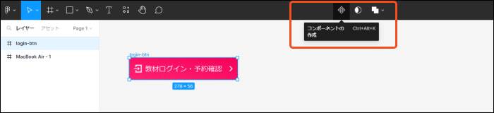 (7)複製した方のフレーム[login-btn] を選択して、上部[コンポーネントの作成]アイコンをクリックします。