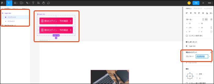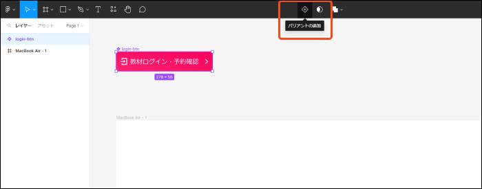 (9)さきほどコンポーネントの作成をクリックした場所のアイコンが[バリアントの追加]に変わるのでクリックします。