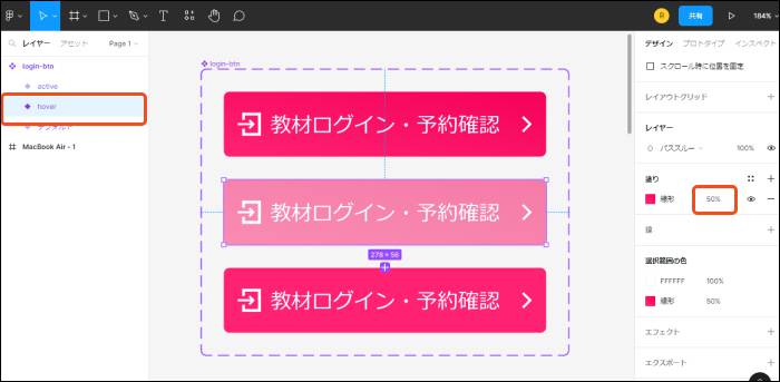 (13)レイヤーパネルからバリアント[hover]を選択し、塗りの透明度を50%にします。