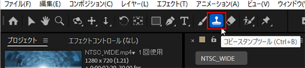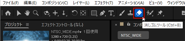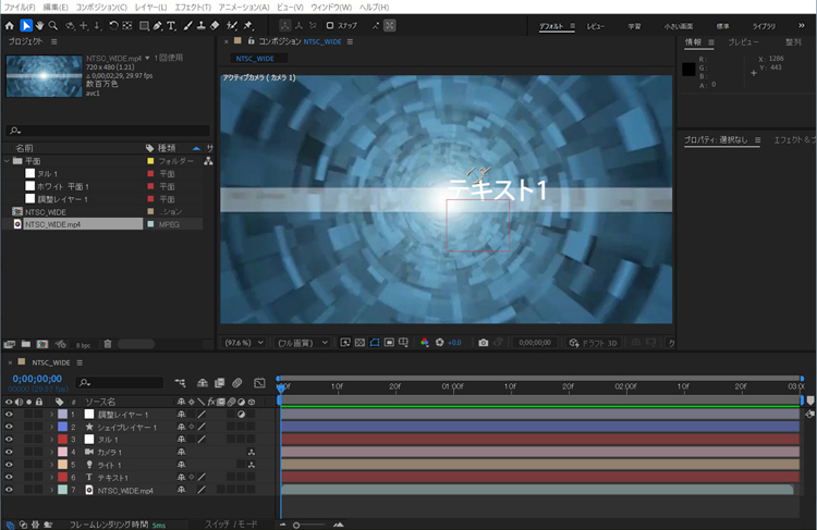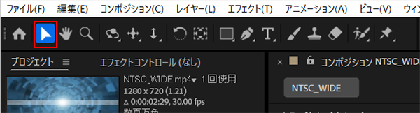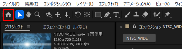 (1)フォルダ「AEkiso02」から、プロジェクトファイル「画面構成.aep」をダブルクリックで開きます。