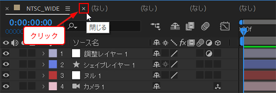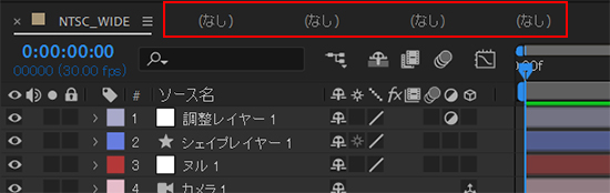 ワークスペースをリセットすると(なし)コンポジションができてしまう