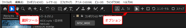 レイヤーの選択や移動、モーションパスの調整を行います。