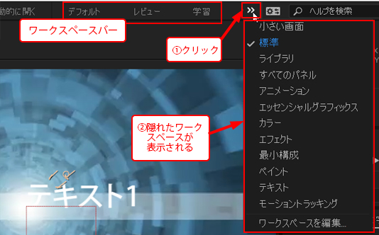 「>>」をクリックすると、隠れたワークスペースが表示されます。