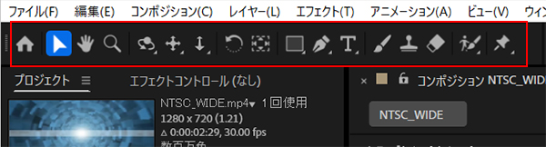 - 画面上部のメニューバーの下にあるのが、ツールパネルである。