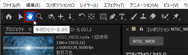 コンポジションパネルに表示されているビューの位置を移動できます。