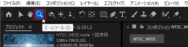 コンポジションパネルやレイヤーパネルの表示を拡大、縮小できます。