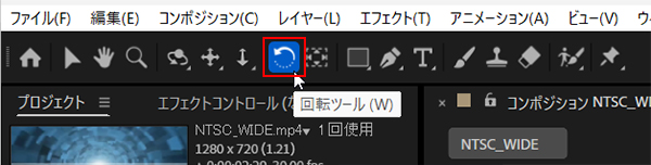 選択したレイヤーのアンカーポイント(中心点)を中心に回転させることができます。