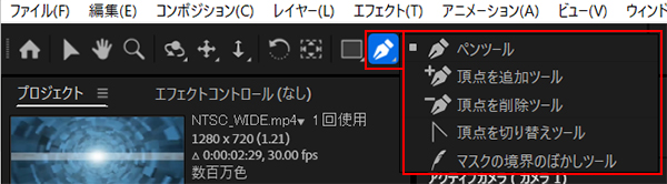 ベジェ曲線を使ったベジェマスクやベジェシェイプを作成します。